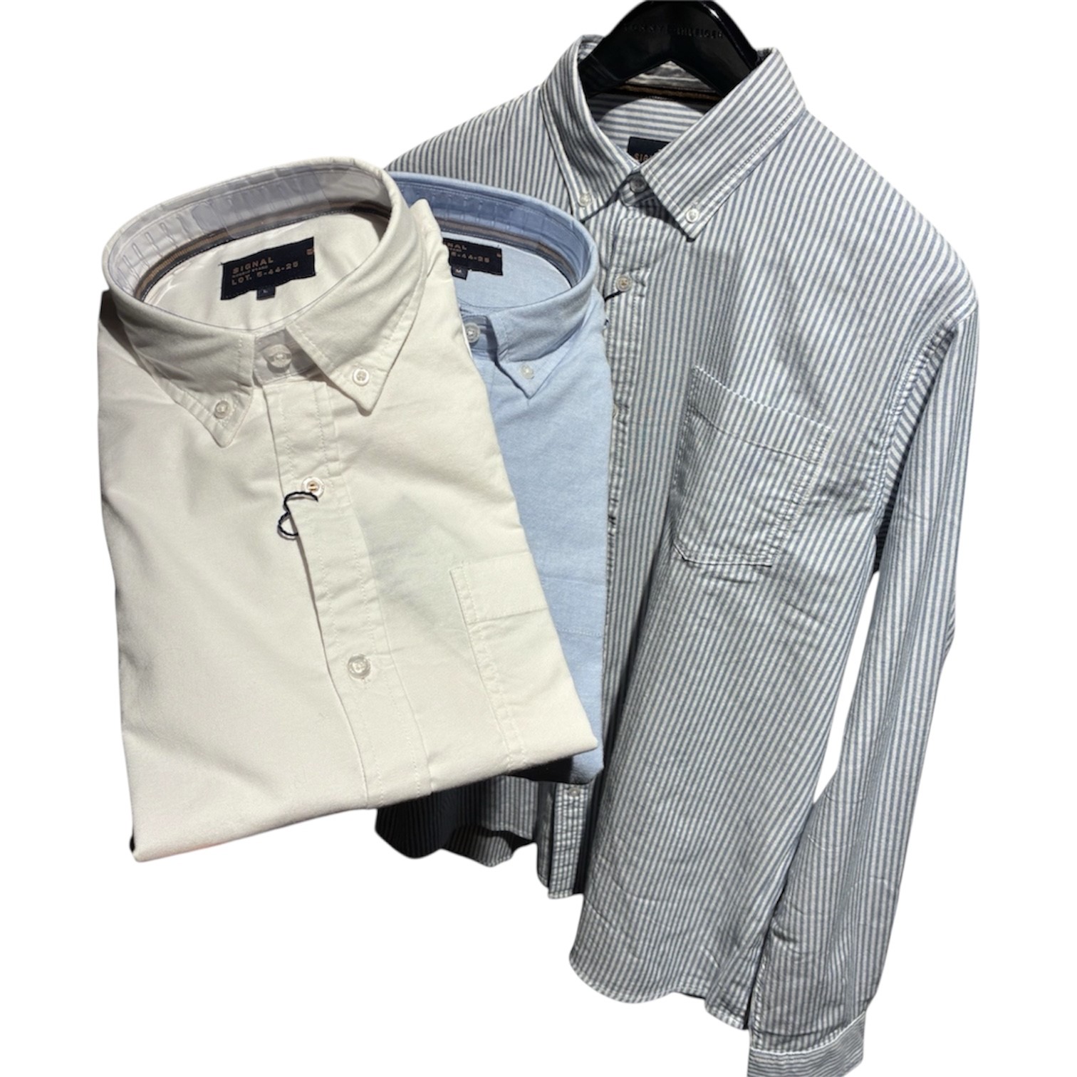Oxfordskjorte Hverdagsskjorte hvid lysblå MælkestribKlassisk oxford skjorte. Kan bruges, hængende uden på ens chinos eller jeans, eller dress den op, med et slips og en blazer udover. En hver mands eje.