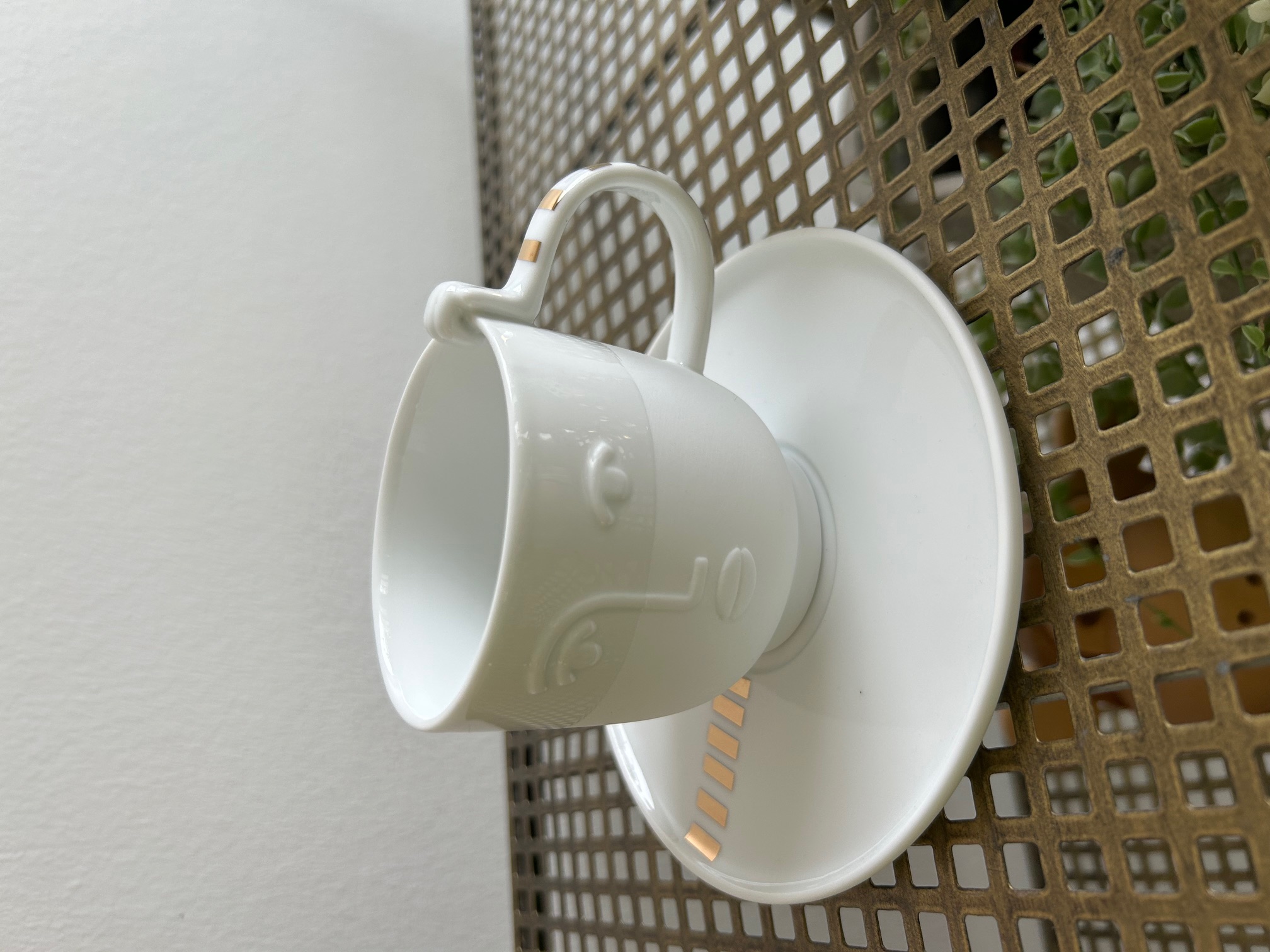 Kop med underkop og gulddetaljer 8,3 cm, Ø 7,8 cm
