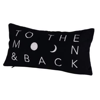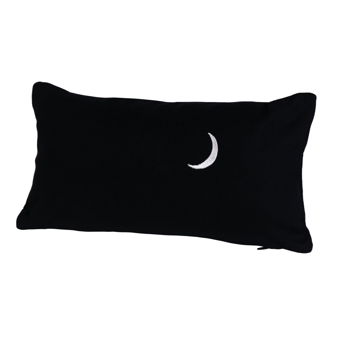 Sort bomuld mål 33x17cm med hvidt broderi, både for og bag. Polyester fyld.