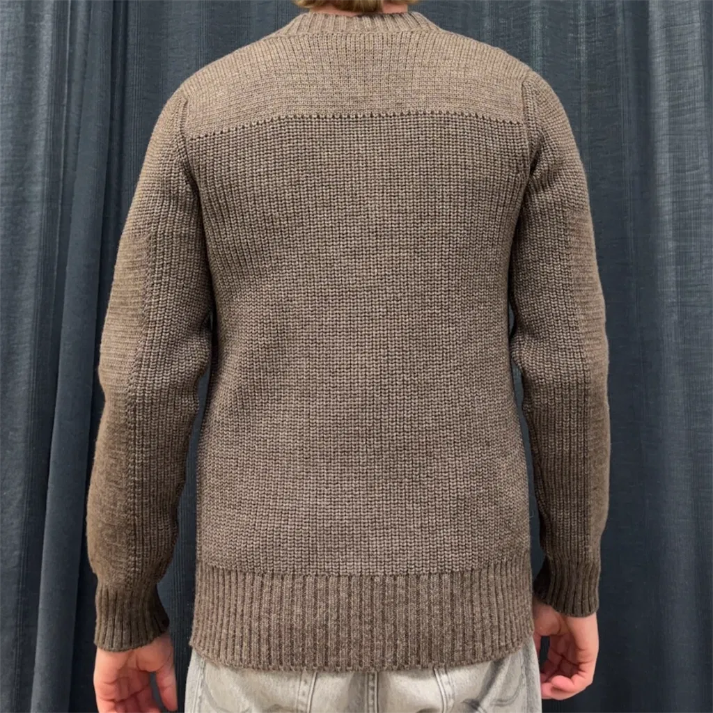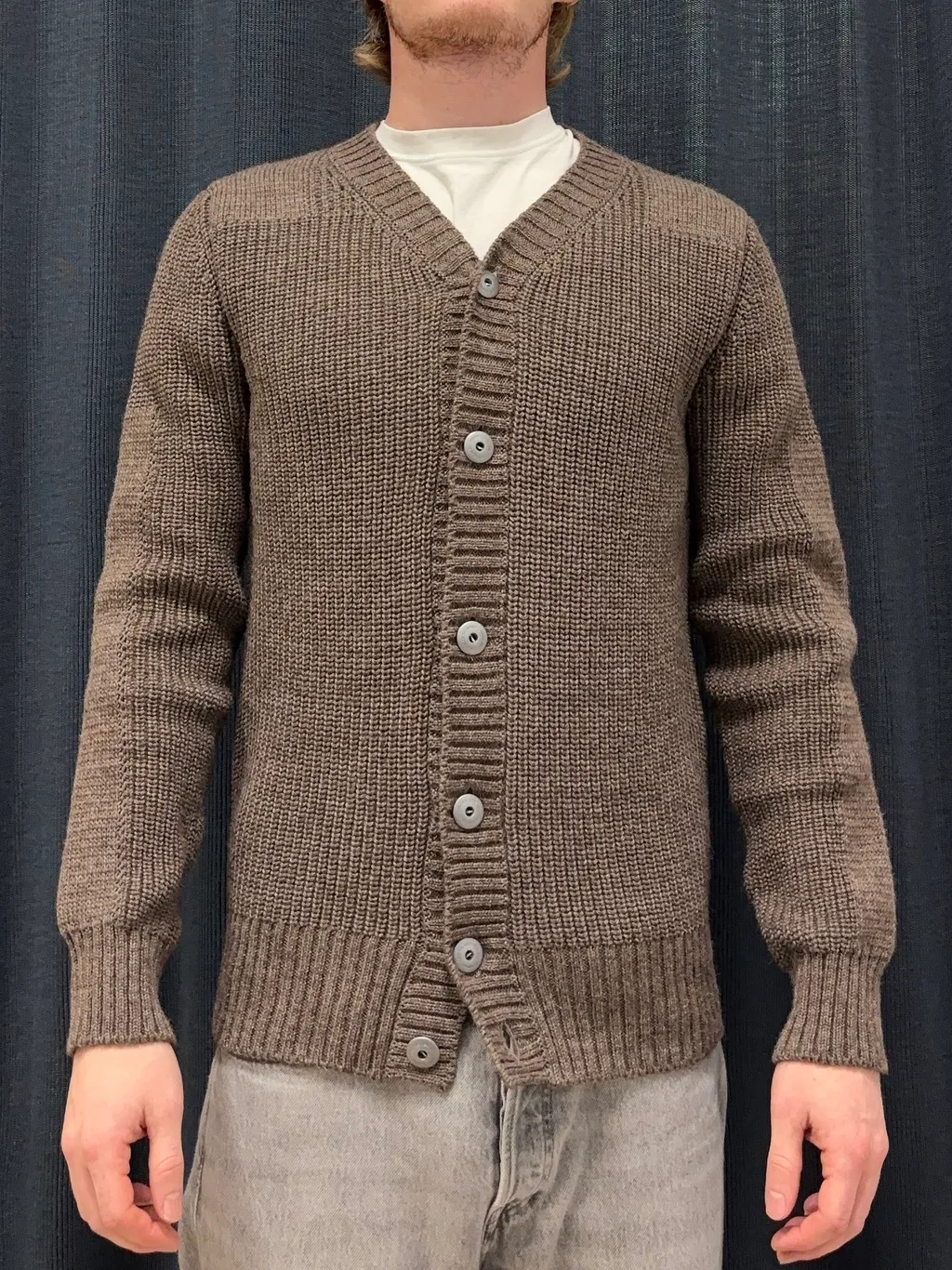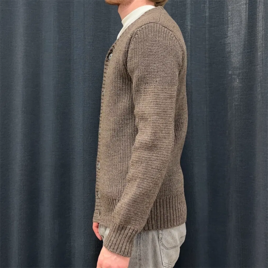 StrikLækker og struktureret cardigan fra S. N. S. Herning. Modellen hedder RANK-III og er strikket i en kraftig 5-gauge kvalitet af 100% fin merinould, hvilket giver en varm, slidstærk og luksuriøs fornemmelse. Farven Terra Brown er en rolig, jordtonet brun, som passer perfekt til både neutrale og mørkere outfits.